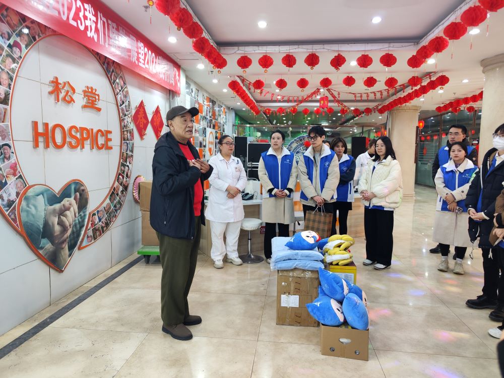 在北京松堂關(guān)懷醫院,醫院創(chuàng )始人李松堂與工作人員熱情接待志愿服務(wù)團隊,并向大家講解了建院歷史與經(jīng)營(yíng)使命。北京松堂關(guān)懷醫院在1987年創(chuàng )立于香山腳下,是國內較早的臨終關(guān)懷醫院,集醫院、敬老院、福利院職能于一體,秉承“幫天下兒女盡孝,給世上老人解難,為黨和政府分憂(yōu),展中華大愛(ài)情懷”的建院宗旨,在社會(huì )中不斷播撒溫暖陽(yáng)光,凝聚向善力量。